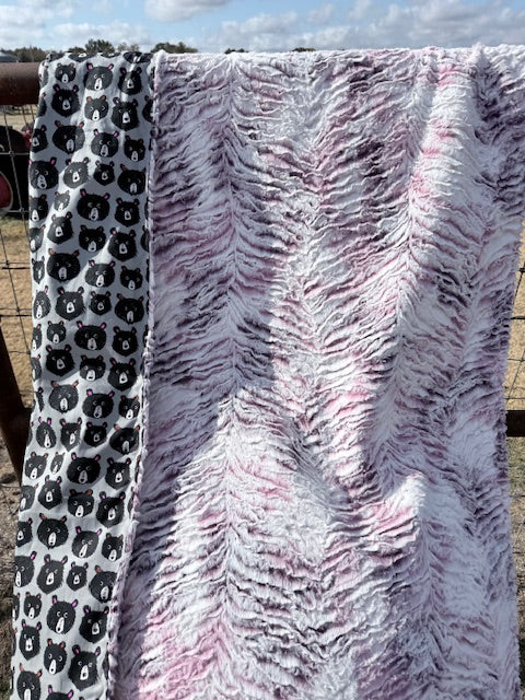 Wrap yourself in cozy luxury with our Bears oh my Minky Blanket. This pretty blanket features a beautiful bear head...