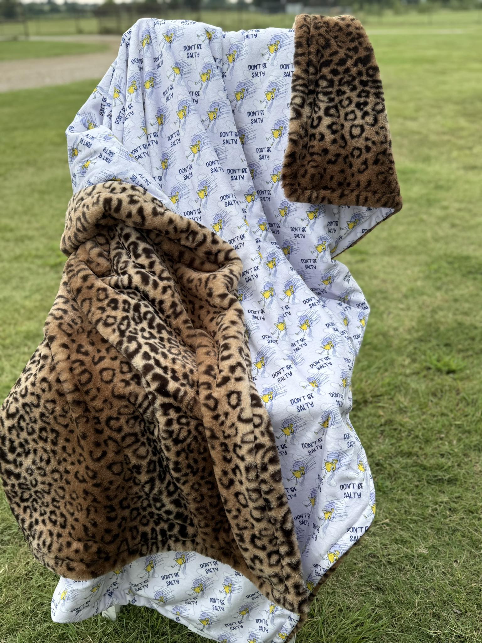 Don’t be Salty blanket with cheetah faux fur. Another gorgeous custom everyday blanket! Size 57”x67”