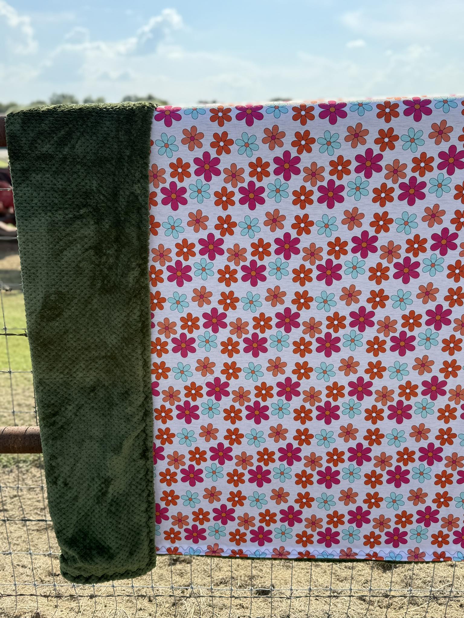Hippie Love blanket with olive green minky.Another gorgeous custom everyday blanket!Size 57”x79”