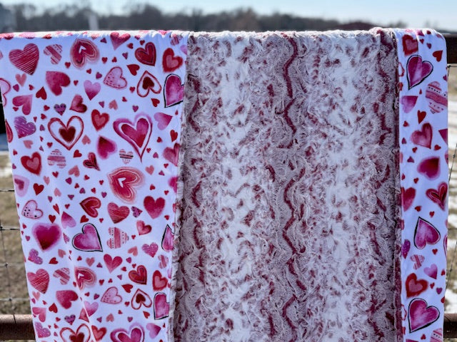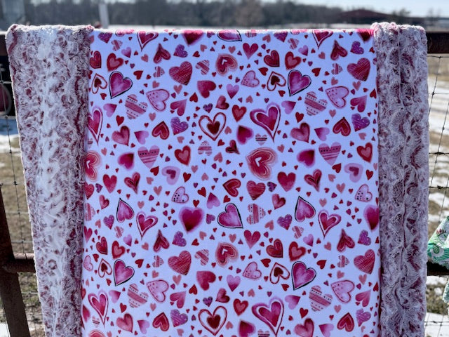 My heart blanket with a luxurious red spiral minky back. Another gorgeous custom everyday blanket! Size 57”x70”