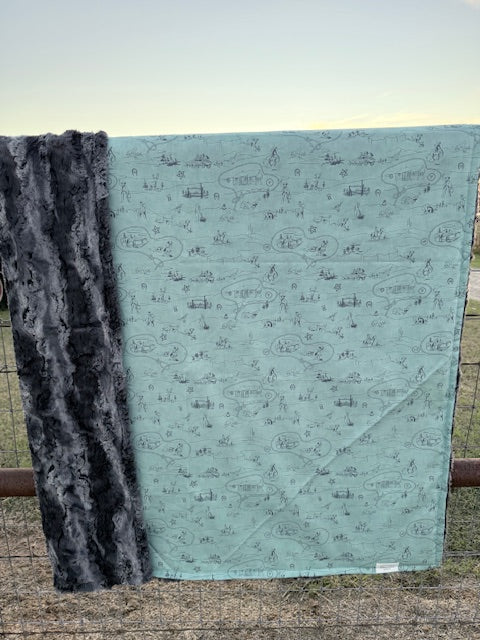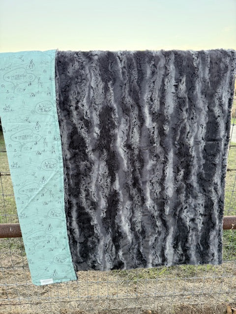 My Western Place blanket with a wild rabbit faux fur back. Another gorgeous custom everyday blanket! Size 43”x72”